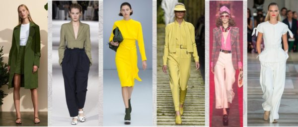 Természetesen a zöld: az életigenlő lombzöld mellet a khaki lett az új szürke (vagy az új bézs, a lényeg, hogy egy jól kombinálható, semleges alapszín). Az igazi tavasztündéreknek pedig itt a sárga és a pink minden árnyalata: a ragyogó napsárgától a halvány vaníliáig, illetve a vattacukor-rózsaszíntől az erős fuksziáig. A fehér is különösen hangsúlyosan jelent meg a tavaszi kifutókon, letisztult és sikkes tetőtől talpig fehérbe bújni.